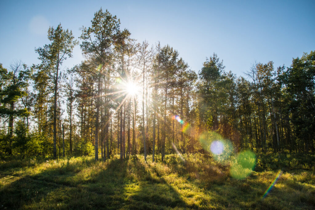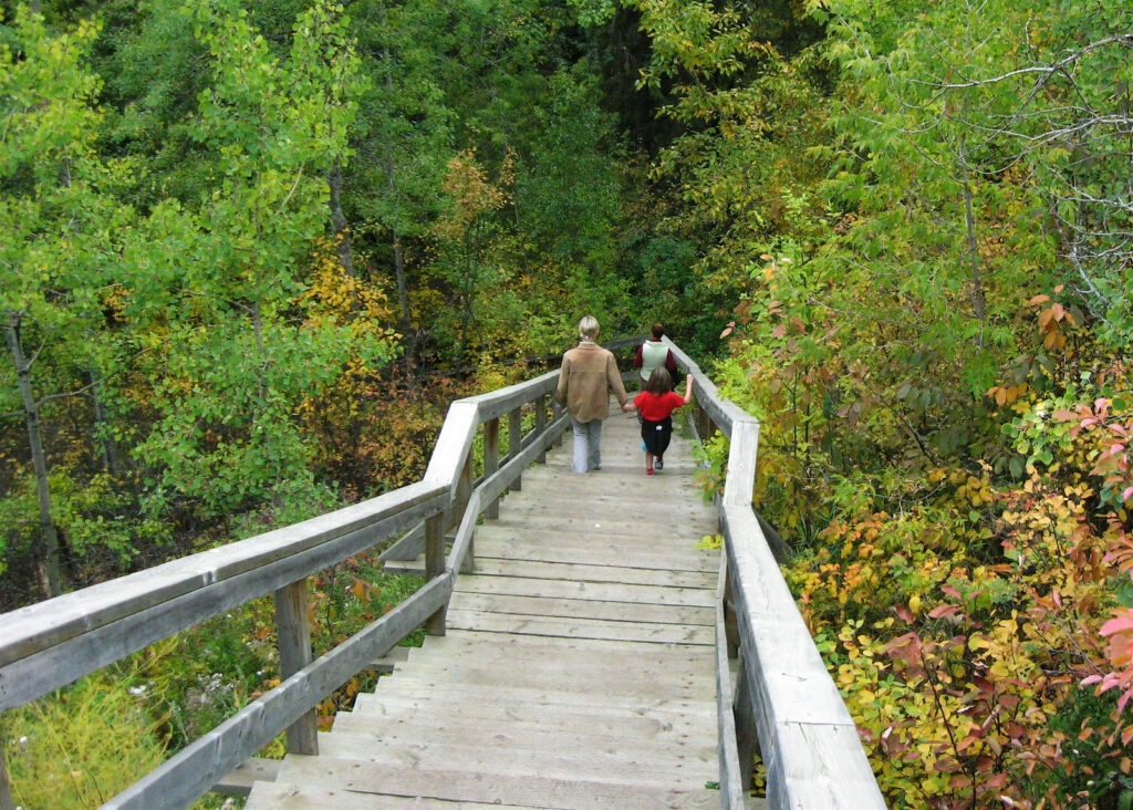 Hike at Elk Island National Park: new scents, sights and sounds await all year round. Stroll through a shadowed landscape of a black spruce bog; the tangy smell of spruce trees mixes with the earthy scent of moss and peat under foot.