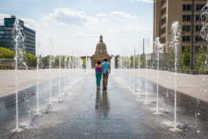 Visit Alberta Legislature - a beautiful colonial-style building dating back to 1911. Free tours are available. There are wading pools to cool off in during the summer and skating rinks beside walkways in the wintertime.