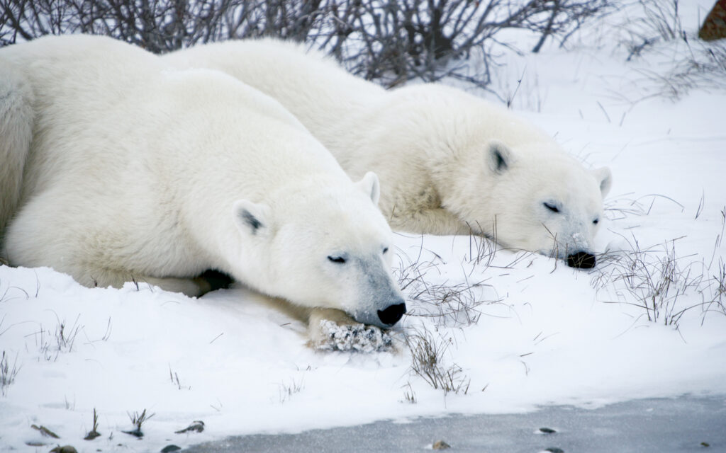 We enjoyed the company of the two bears as they posed just outside the breezeway of the lodge, Mom perched on a rock while her youngster napped below her. It was an amazing way to end the day, watching polar bears with a plate of appetizers and a glass of wine, and little did we know we were headed for a polar bear extravaganza!