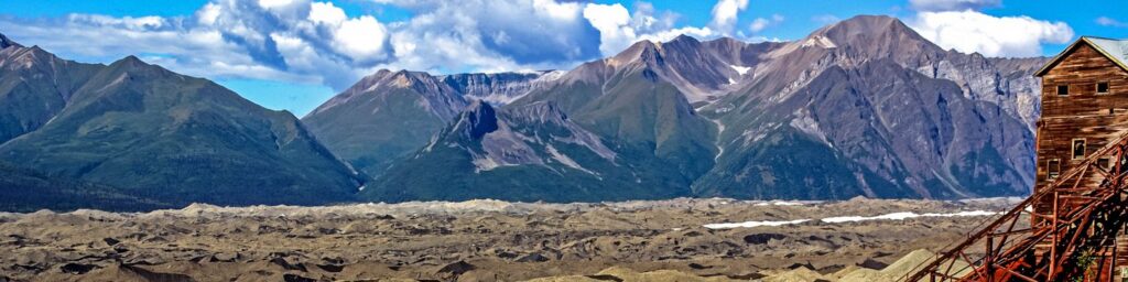 McCarthy located at the foot of the Wrangell Mountains is the gateway to the Wrangell Elias National Park and Preserve. The old mine buildings, artifacts, and colorful history attract visitors during the summer months.