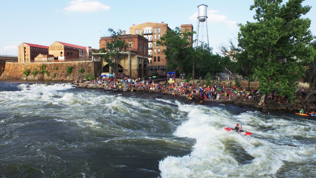 In Columbus, Georgia, enjoy a lazy river ride in the morning and a wild adventure with class V rapids in the afternoon at RushSouth Whitewater Park, the longest urban whitewater course in the world. Take a high adventure on the zip line that crosses the Chattahoochee River from Georgia to Alabama and back again.