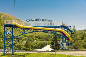 Lava Hot Springs is located in the mountainous valley of the Portneuf River. The city is a popular resort location, noted for its numerous hot springs soaking pools. Bubbling out of natural underground springs, the Lava Hot Springs are laden with minerals and odorless, promising a relaxing, healthy soak. Each of the five outdoor hot pools have constant flowing hot mineral water whick vary in temperature from 104 degrees to 112 degrees.