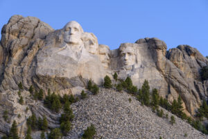 Towering high above the treetops and juxtaposed against limitless skies, Mount Rushmore is an impressive tribute to freedom and democracy in America. The awe-inspiring granite sculpture features 60-foot faces of four U.S. presidents who played an integral role in the birth, expansion, development and preservation of the nation: George Washington, Thomas Jefferson, Theodore Roosevelt and Abraham Lincoln.