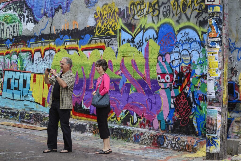 The statue of George Washington, the first U.S. president, was strategically placed outside Rapid City’s first hotel, Hotel Alex Johnson, built in 1927.  Besides the presidents, other street art includes Native American pieces, like this piece by Dale Lamphere.