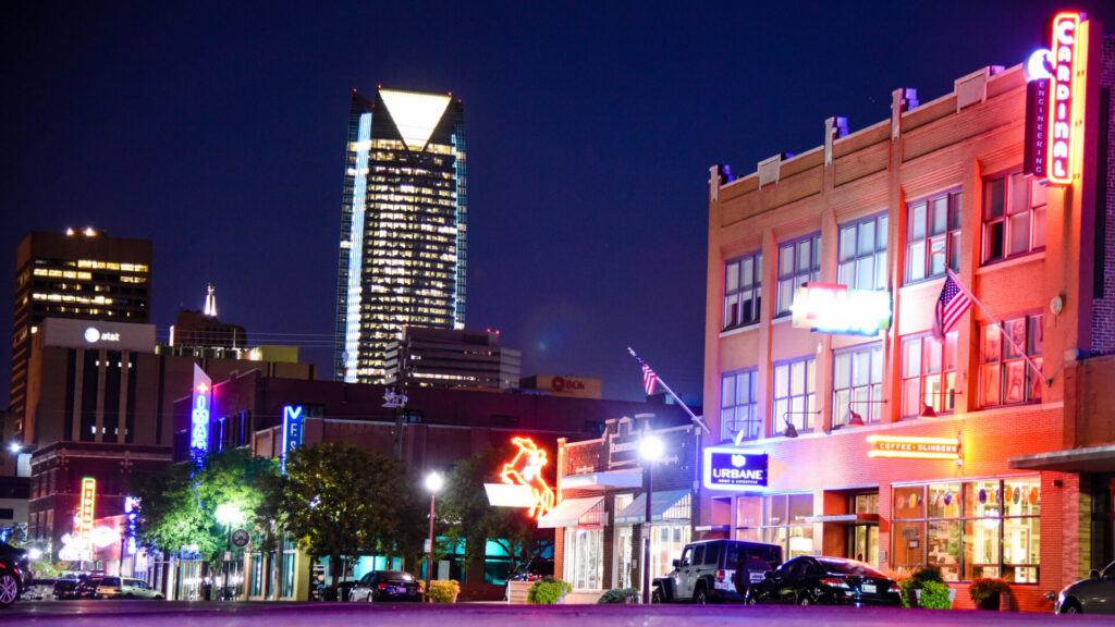 For over half a century, Oklahoma City was home to every major motion picture studio from Hollywood, California. Studios hosted hundreds of their film exchange distribution offices in what has become the historic Film Row business district. Located in the heart of Downtown Oklahoma City, the creative presence at Sheridan and Lee Avenues includes a mixture of art galleries, businesses, radio stations, movie houses, locally-owned restaurants and much more.