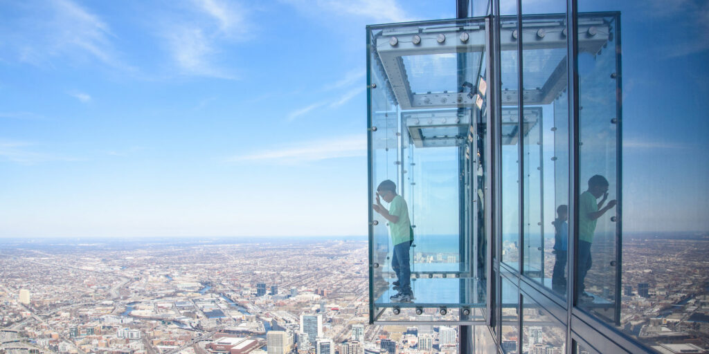 Chicago is one of the world’s greatest cities. Located on the southwest tip of Lake Michigan, its amazing skyscrapers are the first thing to strike you. Take one of the elevators up to the Sears Tower for an amazing view over the lake.