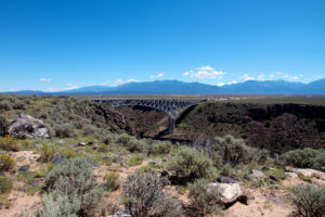 Ride everything from a llama to a hot air balloon to get the best views of the Rio Grande Gorge and the Taos Plateau volcanic field. Take a ride on the « Taos Box » on the Rio Grande on a spectacular guided raft trip and admire the spectacular views from the Rio Grande Gorge bridge at sunset.