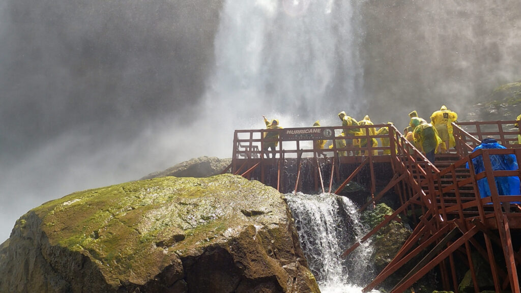 Cave of the Winds - Experience an exhilarating adventure at Niagara Falls, New York. Visitors don ponchos and ascend wooden walkways near Bridal Veil Falls, feeling the rush of water and mist. It's an immersive journey offering breathtaking views and unforgettable encounters with nature's power.