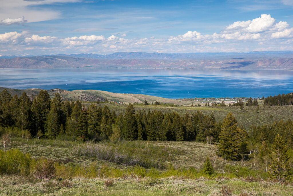 Bear Lake is a 20-mile long and eight-mile wide natural lake with beautiful, placid waters that perfectly match the tranquil pace of the quaint towns that dot the shore. The northern half is located in Idaho and the southern half in Utah with the state lines dividing it. The turquoise colour of the lake comes from the mineral calcium carbonate. The vibrant waters have led some people to call it the “Caribbean of the Rockies.”