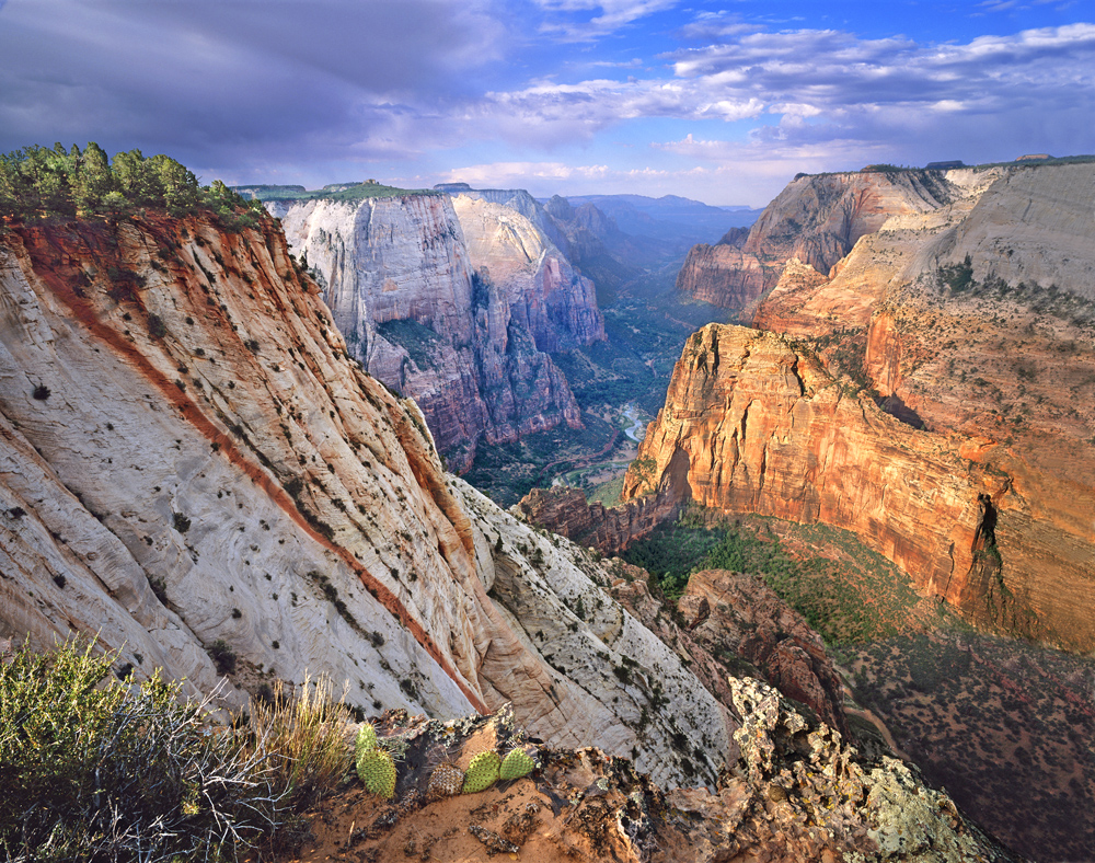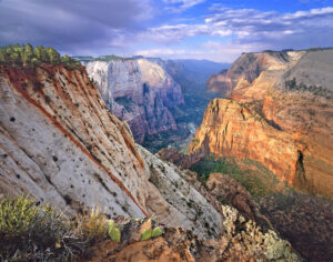 Seeping Raub, the pull of gravity and the small, seemingly peaceful Virgin River are master sculptors chiselling out Zion Canyon and its massive stone formations. Like inspired artists, these sculptors of Mother Nature continually refine their work. Erosion from rain and floods take place continuously, changing the details of the canyon and the sandstone monoliths that give the park its power and character.