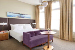 The hotels 101 guest rooms and 19 suites provide a welcome sanctuary from the art and activity that fills the 21c galleries. Designed by renowned architecture firm Deborah Berke Partners, rooms have high ceilings, contemporary furnishings, large windows, and beautiful original artwork. All rooms offer original artwork, 43″ flat screen television, alarm clock/docking station, Wi-Fi, Malin + Goetz bathroom products and luxurious bedding. There are a wide range of room types, either king or with two queen beds, to choose from. For the ultimate experience stay in the huge 21c Suite, which boasts a rooftop terrace amongst other luxuries.