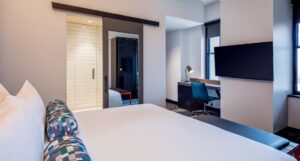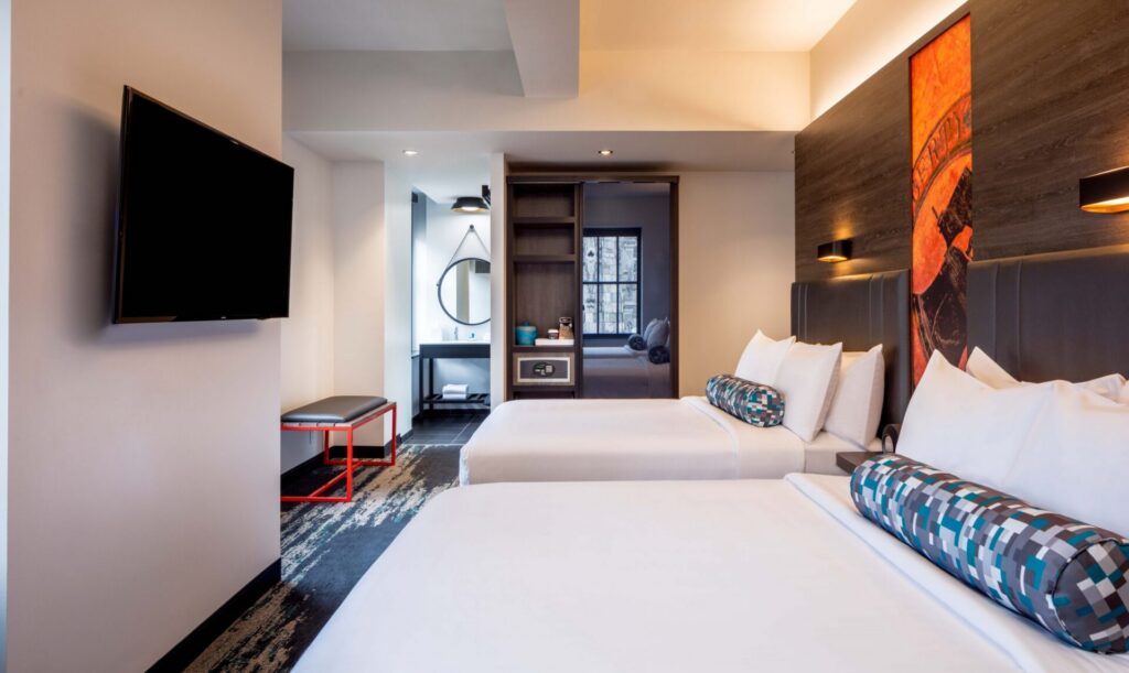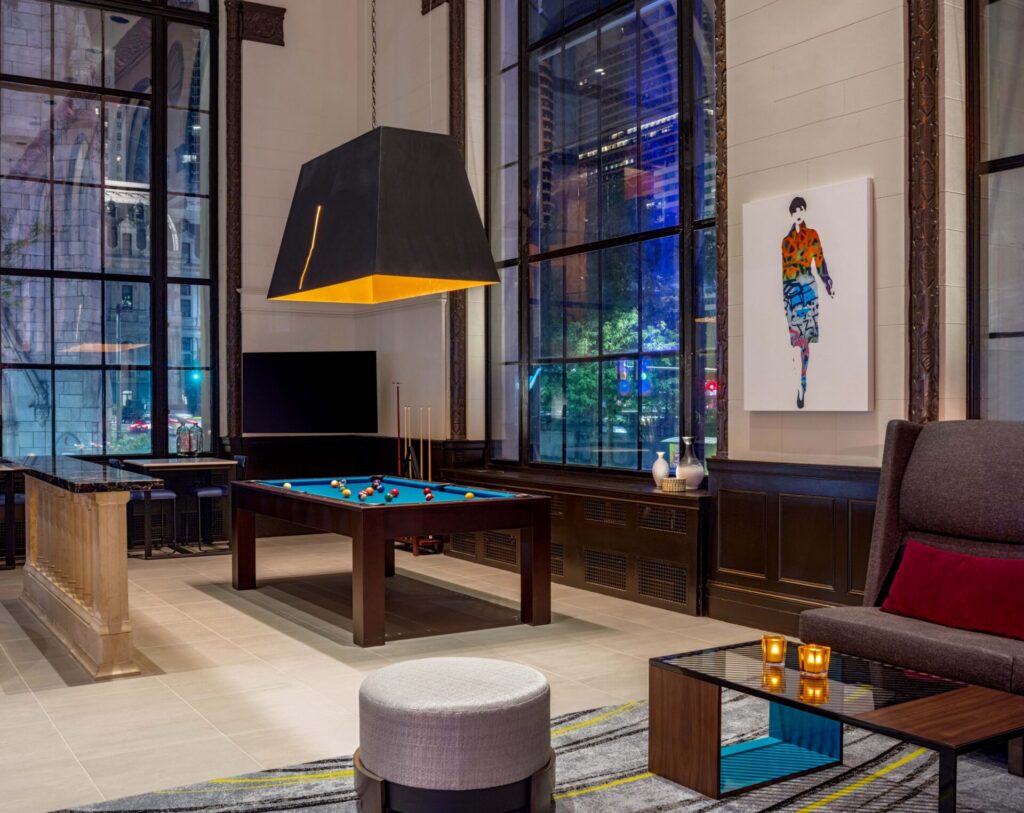 This boutique-style hotel is located in the beautifully-restored 1925 Liberty Title & Trust Company building, affording an elegant facade which continues into the hotels furnishings. The guestrooms are contemporary in design, furnished in dark woods and a white palette with blue accents. A coffee machine and refrigerator ensure hot and cold drinks are on hand and the flat screen televisions, iPod dock and complimentary WiFi make your stay a relaxed one.