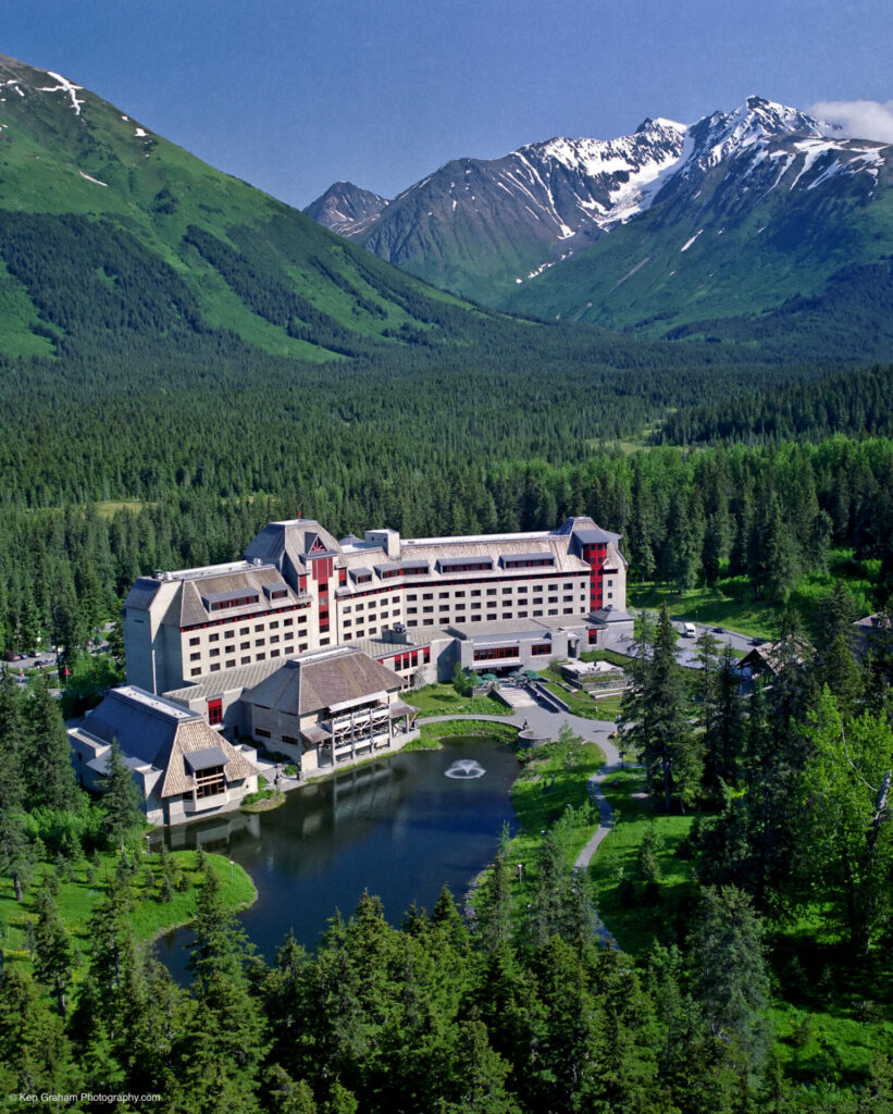 Nestled in a lush valley surrounded by mountain peaks, hanging glaciers, and spectacular ocean views, the Alyeska Resort is just 40 miles from Anchorage. Located in the glacier town of Girdwood, this hotel sits tucked amid the Chugach Mountains on Alaska's south-central coast and has a backdrop of glaciers, bald eagles, towering spruce trees, and best of all your gateway to outdoor adventure.
