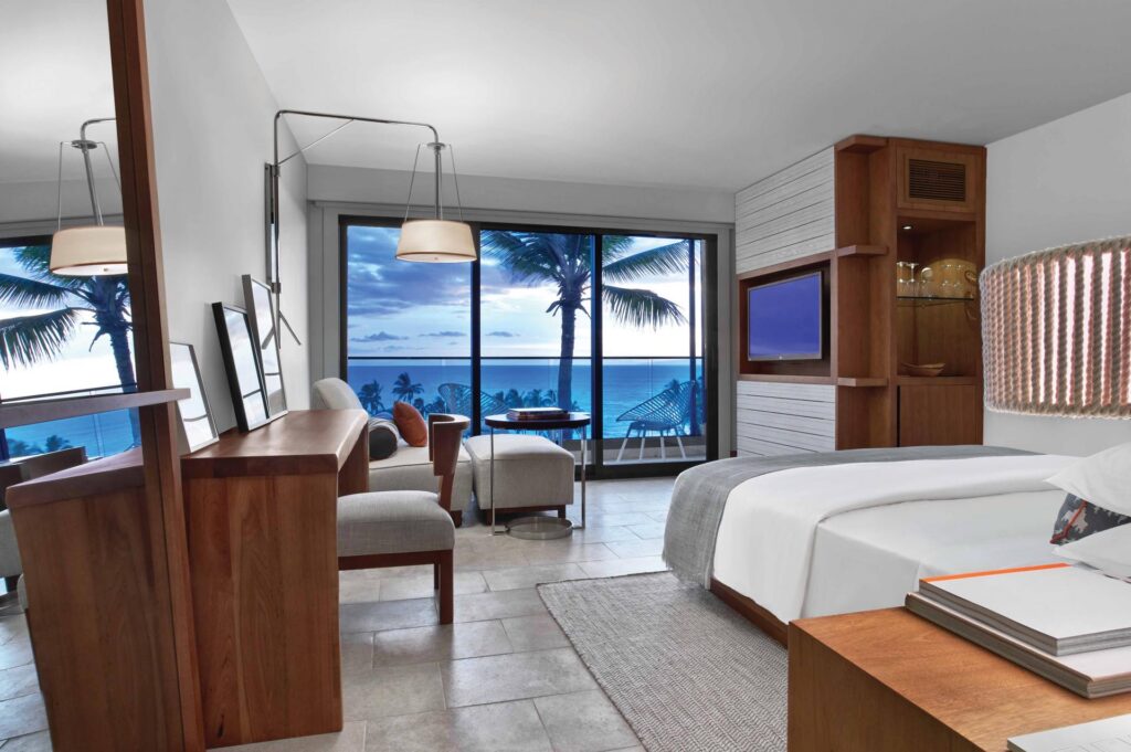 This fabulous Hyatt hotel brings a cool vibe to the crescent-shaped shores of Maui. 290 well-appointed guestrooms and suites blend Andaz’s signature contemporary style of crisp white linens and wood décor with unique Hawaiian artwork and private lanais overlooking the tropical resort grounds and Mokapu Beach. Every room at Andaz Maui features a 40" flat screen television, climate control, coffee-maker and mini-bar, and the opulent bathrooms boast rain-showers with ocean or garden views, luxurious bath products and plush bathrobes.