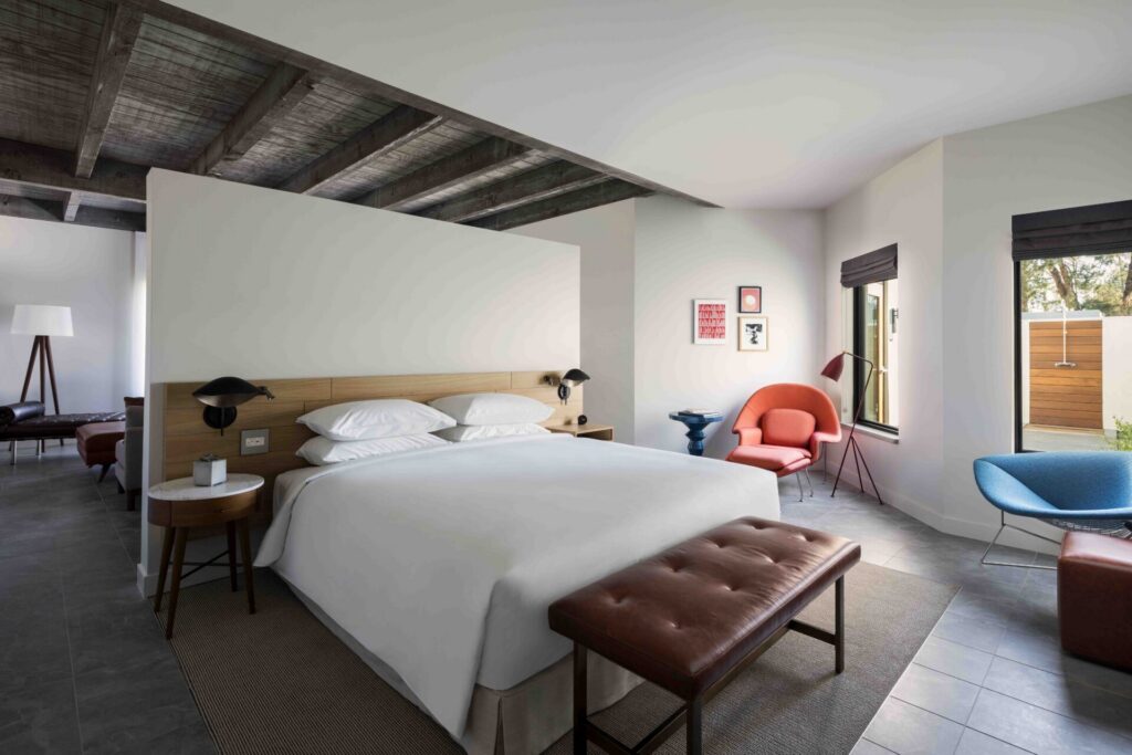 Part of the Hyatt Hotels and Resorts family, the Andaz features 185 guestrooms and suites, which are located in casita-style bungalows. Drawing inspiration from the 1950s desert art movement, local art is woven throughout. All accommodations have a fresh décor of white with splashes of colour, and feature a private terrace, flat screen television, wireless internet, coffee-maker and mini-bar.