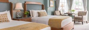 The traditional New England accommodations spread throughout three unique guest room buildings: the Main Inn, the Oceanfront Lodge, and the Newport Building. Each building offers its own character, with options of bay view suites, oceanfront rooms, or garden and grounds view rooms. Amenities in all rooms include complimentary Wi-Fi, flat-screen televisions, safety deposit boxes, coffee maker, mini-refrigerators, and air-conditioning. Should you choose to upgrade to a suite, you will be greeted with additional living space and upgraded amenities.
