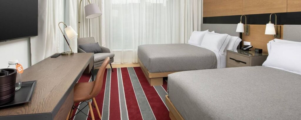 Canopy by Hilton Ithaca Downtown offers stylish and comfortable guestrooms designed with modern amenities and thoughtful touches throughout. Each room features a contemporary design inspired by the local surroundings, creating a welcoming ambience for all guests. Plush bedding,  complimentary Wi-Fi, flat-screen televisions, mini-refrigerator and coffee maker come as standard in all rooms. Additionally, the rooms boast large windows that provide abundant natural light and picturesque views of downtown Ithaca or the stunning nearby landscapes.