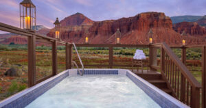 Sitting just a mile from the entrance to Capitol Reef National Park, this resort is nestled alongside 100 miles of natural wonders, including cliffs, canyons, domes and natural bridges.