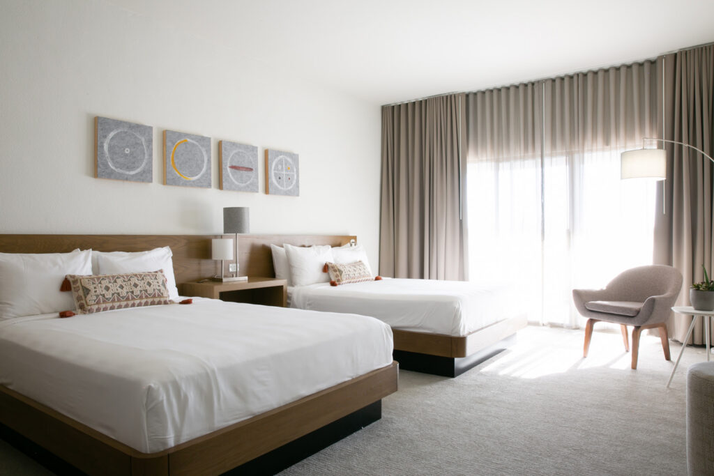 Surrounded by the calming energy of the desert mountains all rooms and suites offer a quiet reprieve and a chance to recharge. Rooms are adorned with clean lines, a memory foam euro-top mattress, natural materials, and spacious layouts all with an outdoor balcony or patio with partial views of the Black Mountain and tranquil garden area.