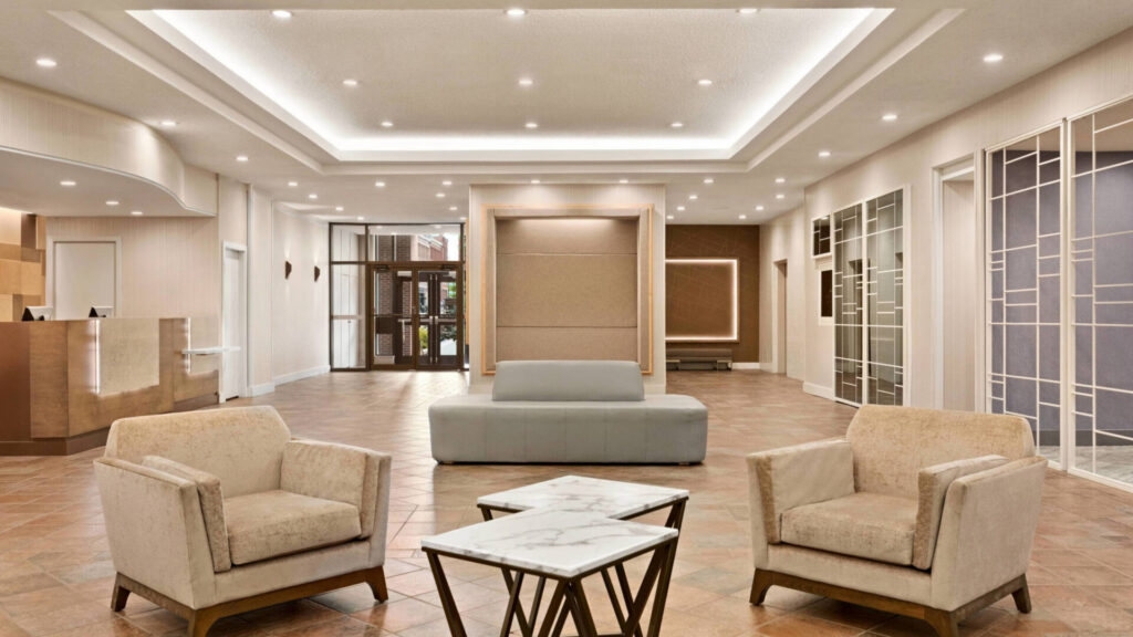 The guestrooms and suites, featuring a bright and fresh design, provide all the amenities necessary for a comfortable stay. Each room includes a 32″ flat screen television, coffee maker, and wireless internet, with options for a king bed or two queen beds. Additionally, a selection of upgraded rooms offers extra amenities and additional living space, ideal for larger families.