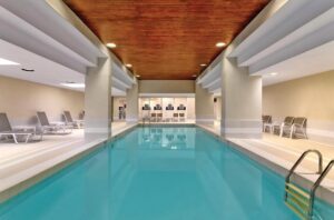 Stylishly decorated, guestrooms and suites at the DoubleTree are contemporary and spacious, and feature an array of amenities. Ensuring every stay is one of complete comfort, all rooms feature European linens, 40″ flat screen televisions, climate control, coffee-makers, refrigerators and wireless internet. Choose one of the hotel’s suites and enjoy a separate living area and upgraded amenities.