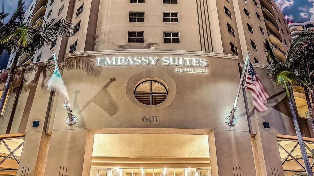 The Embassy Suites by Hilton San Diego Bay Downtown is strategically situated in the heart of downtown San Diego. This location provides guests with unparalleled access to some of the city's most renowned attractions, including the picturesque San Diego Bay, the historic Gaslamp Quarter, and the vibrant Seaport Village. Additionally, guests will find a variety of premier dining, shopping, and entertainment options within walking distance. San Diego International Airport is just ten minutes drive away from the hotel.
