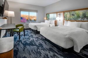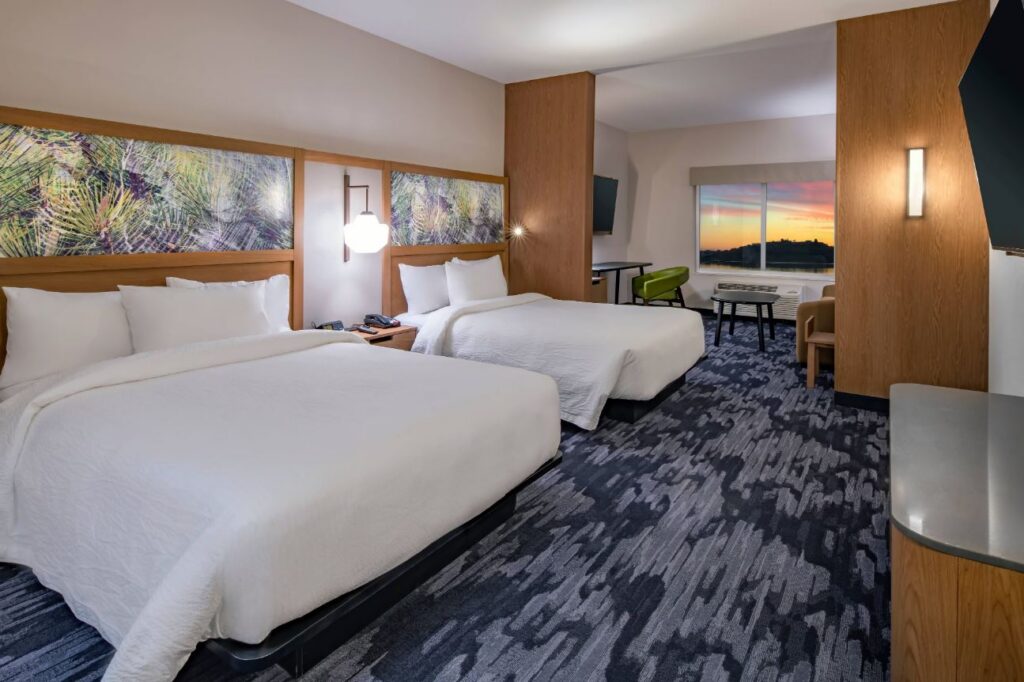 Each spacious and contemporary guestroom at the Fairfield Inn is beautifully decorated with splashes of bright colours throughout. All guestrooms feature a flat-screen television, complimentary Wi-Fi, a mini-refrigerator, a microwave, and other great amenities for your convenience. Suites are available offering additional living space and upgraded amenities.
