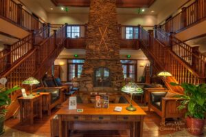 Modeled after a historic forestry station, the grand lodge is a blend of modern and rustic architecture. Featuring a 30-foot rock fireplace, the main lodge offers eight spacious suites.Located amidst a sprawling pine forest, 36 modern craftsman-style cabins offer a unique lodging experience. All with deluxe bedding, hand-built hardwood furnishings, large bathrooms with bath tubs or rainfall showers, fireplaces and flat screen televisions.The private furnished patios offer the perfect place to relax after a day of excitement and adventure.