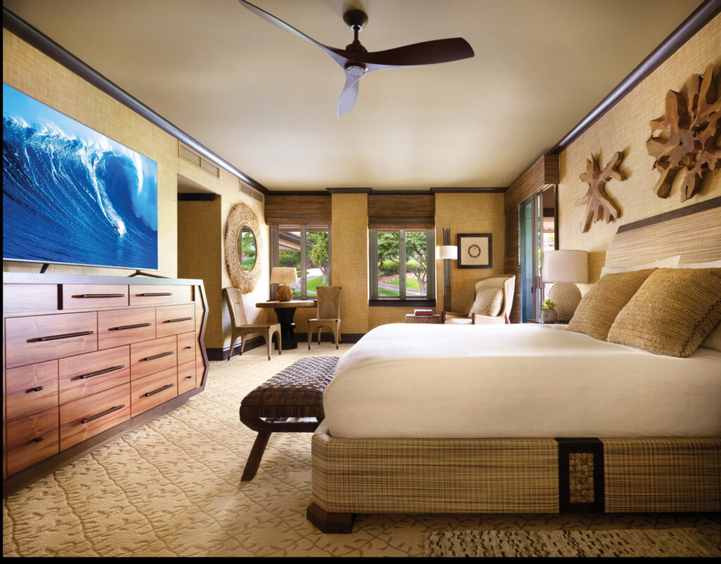Accommodation This luxury secluded hotel, set on a dramatic coastline, offers a private paradise for guests who stay in the 220 superbly-appointed rooms and suites. Beautifully furnished rooms feature a spacious bathroom with marble vanity, bath tub and separate shower and a private lanai with views of the gardens or water. With layered gardens, a profusion of colourful tropical plants and superb waterfalls, this hotel offers the perfect escape from everyday cares.