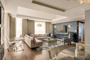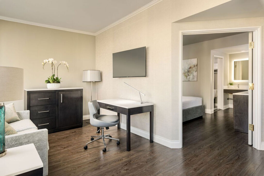 This boutique-style hotel features bright and airy guestrooms with a soothing neutral colour palette. Each room is equipped with a king-size bed with a pillowtop mattress and hypoallergenic duvets, complimentary Wi-Fi, flat-screen television, coffee maker, mini-refrigerator, safety deposit box, and Beekman 1802® bath products. For those seeking additional space and upgraded amenities, suites are available, offering enhanced living areas and sweeping views of the surrounding neighbourhoods.