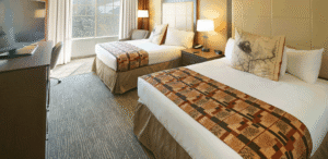 Designed to resemble a century-old train depot guestrooms feature two triple-sheeted queen beds, flat-screen television, complimentary wi-fi, upgraded custom furnishings, a mini-fridge, coffeemaker, alarm clock, air conditioning, and a fully remodeled bathroom with granite countertops and hairdryer. Deluxe rooms and suites are also available adorned with contemporary decor and upgraded amenities for your comfort.