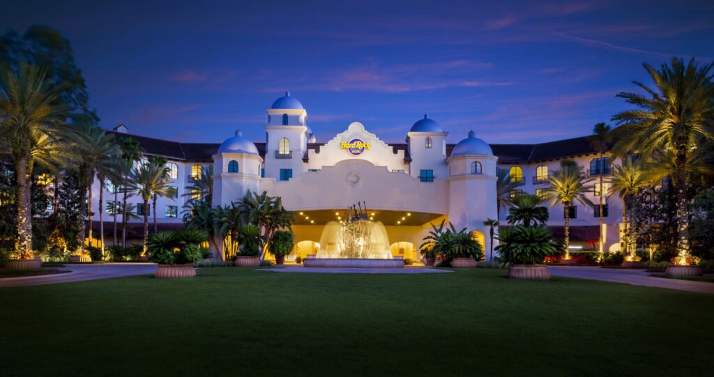 Located on-site at Universal Orlando Resort™ , the Hard Rock Hotel® is just minutes away from Universal Studios Florida™, Universal’s Islands of Adventure™ and the buzz of evenings at Universal CityWalk™. Choose to take the scenic footpath or jump aboard the complimentary shuttle buses and water taxis.