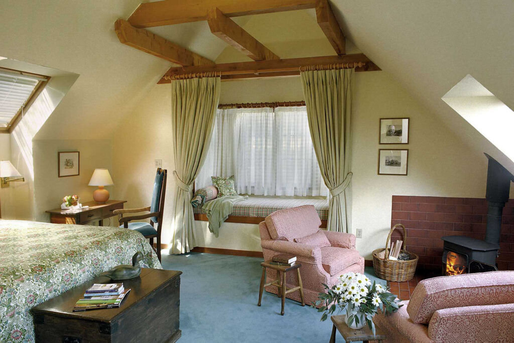 This pretty country house hotel comprises 18 guestrooms and suites, scattered within seven carefully restored buildings, each unique in its distinctive décor. English country antiques, cosy eiderdown bedding, and fireplace or woodstove with comfy seating can be found in all accommodation and many also offer balconies overlooking the landscaped grounds.