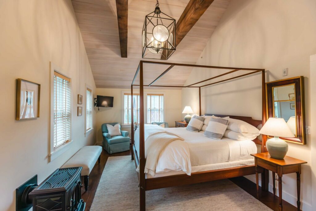 Hill Farm Inn offers an array of elegant accommodations in both guestrooms and cottages, each designed to provide a comfortable and serene experience. The main inn features several uniquely styled guestrooms, blending classic charm with modern amenities. These rooms are furnished with plush bedding, private bathrooms, and tasteful decor, ensuring a restful stay. For those seeking a more private retreat, the cottages at Hill Farm Inn provide a perfect option. Each cottage is beautifully appointed, offering spacious living areas, fully equipped kitchens, and cosy bedrooms. Some cottages also include private porches with stunning views of the surrounding countryside. Complimentary Wi-fi is available in both guestrooms and cottages.