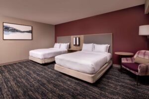 Each of the spacious guestrooms at the Hilton Asheville Biltmore Park offers unparalleled comfort. All rooms are air-conditioned and feature blackout curtains, complimentary Wi-Fi, flat screen televisions, coffee makers, and Hilton’s signature Serenity Beds with pillow-top mattresses, fine European linens, and feather pillows. Additionally, suites are available, providing extra living space and enhanced amenities, ideal for larger families.