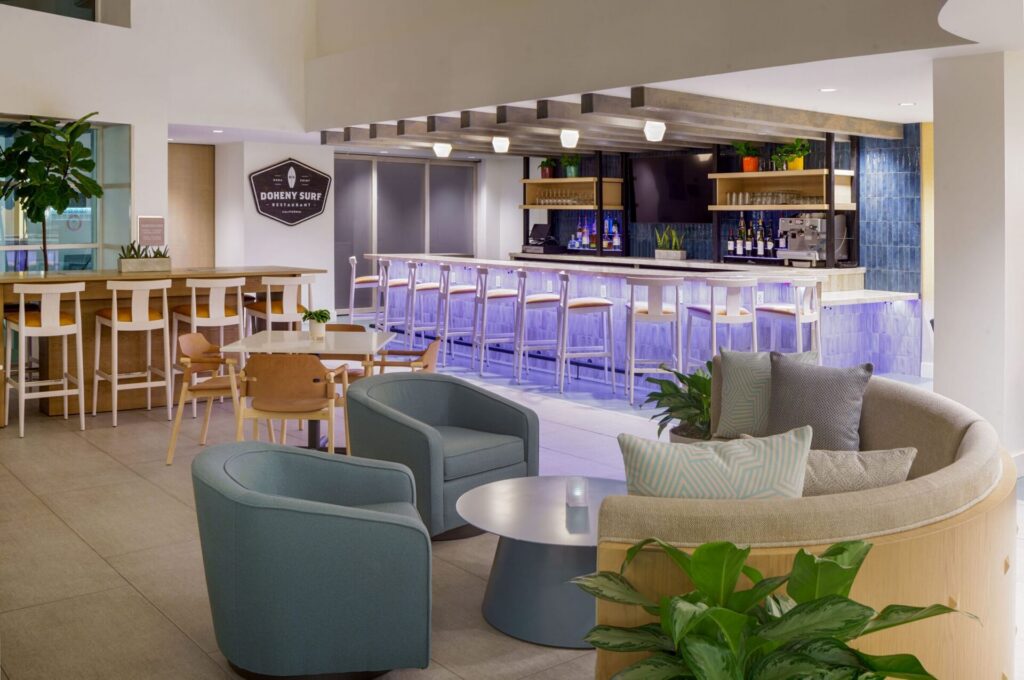 The hotel offers 198 well-appointed guestrooms, each thoughtfully designed with a spacious, flow-through layout. In-room amenities include flat-screen TVs, mini-refrigerators, microwaves, pod coffee makers, in-room safes, and premium ZERO% bath products. Select rooms feature private patios or balconies, some with ocean views, providing an elevated coastal experience.