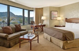 Guestrooms are elegantly furnished and have been carefully designed keeping guests comfort and convenience in mind. All offer great views of Universal Studios, CityWalk or the Hollywood Hills and feature Hiltons signature Serenity Bed, 32” flat screen television, alarm clock with mp3 docking, refrigerator and coffee-maker. There are also a selection of Executive rooms and spacious suites, each boasting additional amenities.