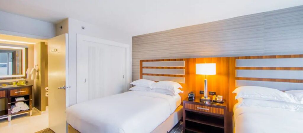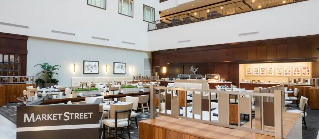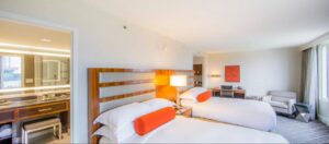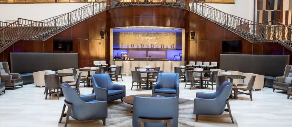 Choose from 330 chic suites designed with comfort and convenience in mind, each providing a luxurious two-room experience. All suites include a Hilton Serenity Bed, coffee maker, refrigerator, flat-screen television and pull-out sofa. You may choose to upgrade to an executive suite for access to the Executive Lounge and stellar park views.
