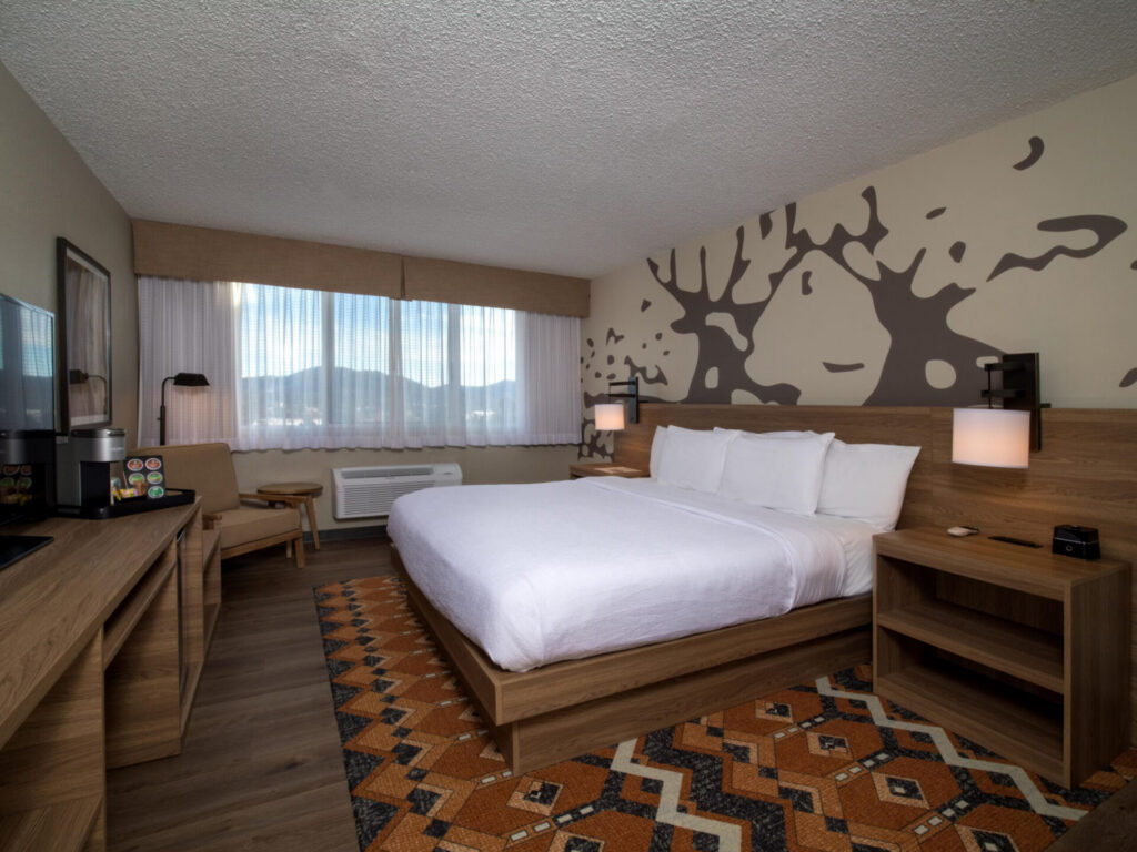 Each of the 150 well-appointed guestrooms and suites is thoughtfully designed to reflect the beauty of the surrounding Rocky Mountains. Every room includes complimentary Wi-Fi, a television, a coffee maker, a mini-refrigerator, and premium bath products. For those seeking extra space and enhanced comfort, the suites offer additional living areas, upgraded amenities, and breathtaking views of the mountains.