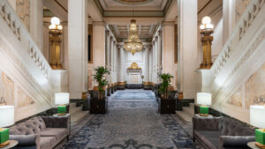 The carefully restored marble staircase, crystal chandeliers and Tiffany stained glass windows set the scene of the buildings history, but it’s the considerate inlay of modern furnishings and artwork which set this hotel apart. The classic Beaux-Arts building offers 202 guestrooms and suites, finely decorated in reds, blues and golds. Flat screen televisions, Frette linens, Atelier Bloem bathroom products, mini-bars and city views are commonplace and selected rooms also feature a Jacuzzi bath. A complimentary morning coffee bar and a hosted evening wine hour add to guest comfort.