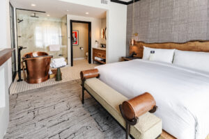 Hotel Renegade offers 122 elegantly designed guestrooms and suites, each exuding a blend of rustic charm and modern sophistication. The decor is characterised by rich textures, exposed brick, warm leather, polished copper accents, and natural steels. Amenities in each room include plush bedding with a pillow-top mattress, complimentary Wi-Fi, televisions, a coffee-maker, plush bathrobes and luxury bath products. Suites offer additional living space and upgraded amenities, perfect for larger families.