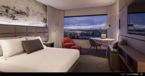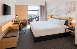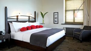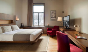 The Hotel Universal features 182 spacious guestrooms elegantly decorated with accents of red throughout. Each room is adorned with wooden furnishings and equipped with essential amenities for a comfortable stay, including a choice of king or two queen double beds, a flat-screen television, coffee maker, mini-refrigerator, and alarm clock radio. For guests seeking extra comfort and upgraded features, Deluxe and Prestige rooms are also available, providing additional living space and enhanced amenities.