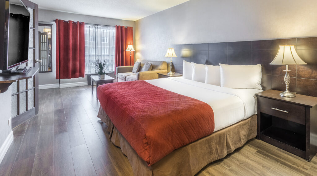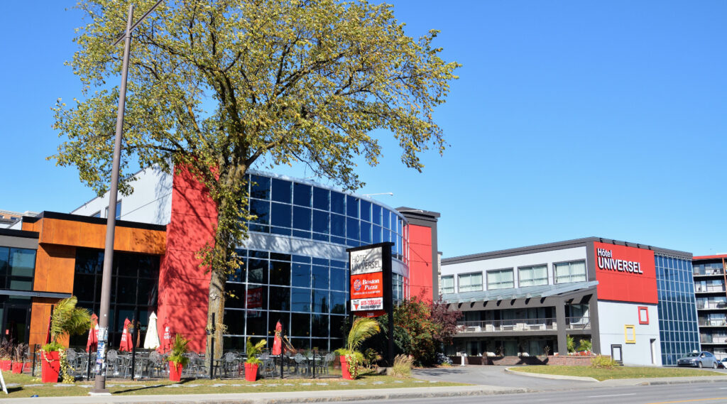 Located on the outskirts of Quebec City, Hotel Universal is nestled in the University area. Quebec's major tourist attractions, such as Saint-Jean and Saint-Louis streets, Grande Allee, Petit Champlain, the Fortifications, the Plains of Abraham, and numerous museums, are approximately a one-hour walk or an eighteen-minute drive from the hotel. Quebec International Airport is a convenient fifteen-minute drive away, while Montreal International Airport is approximately three hours from the hotel by car.