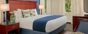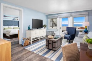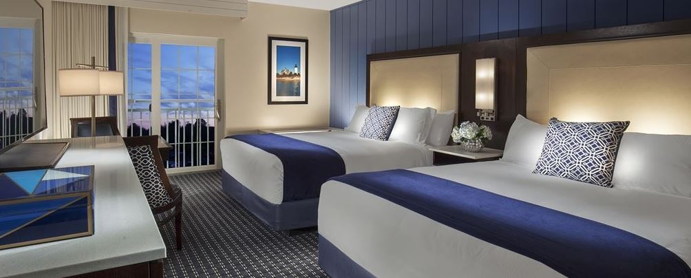The 203 guest rooms and suites boast a nautically inspired theme with a stylish palette of blues, whites, and sea foam greens throughout. Amenities in all rooms include complimentary Wi-Fi, flat-screen televisions, refrigerator, microwave, coffee maker, and safety deposit box. Suites are also available offering additional living space, Juliette balconies (selected suites), and upgraded amenities.