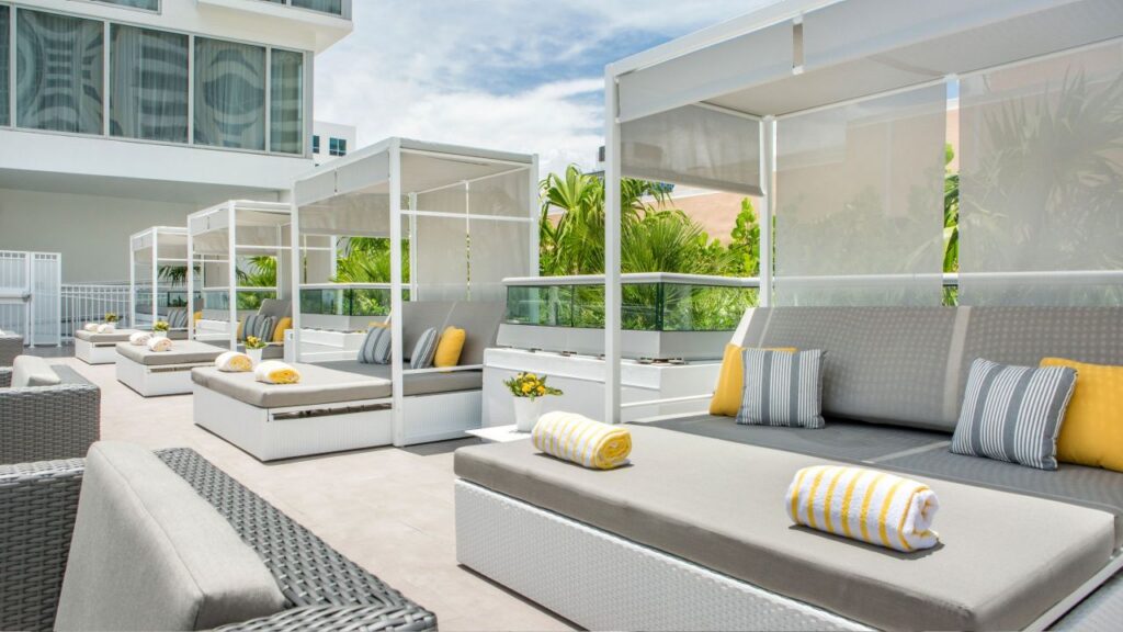 Flawlessly blending iconic Miami style with modern luxury, Hyatt Centric South Beach Miami hotel features spacious guestrooms and suites with floor-ceiling windows flooding in the Florida sunlight. An array of amenities include 47″ flat screen televisions, signature Hyatt Grand Beds adorned by fine linens, iPod docking stations, coffee-makers and air conditioning. Deluxe rooms offer city or ocean views and suites benefit from a spacious living area.