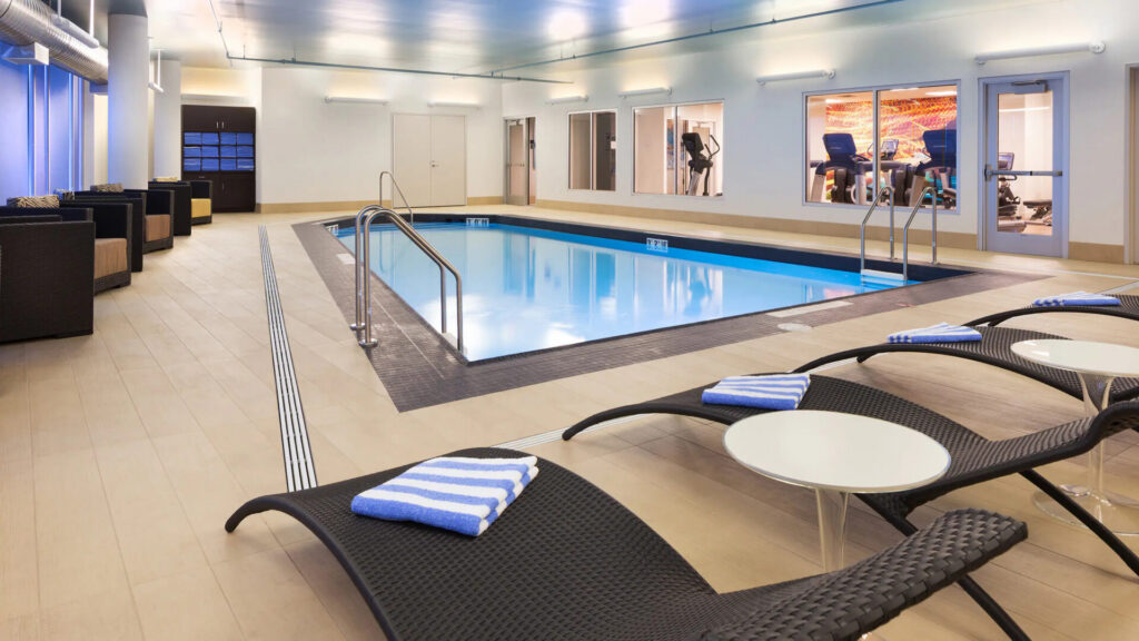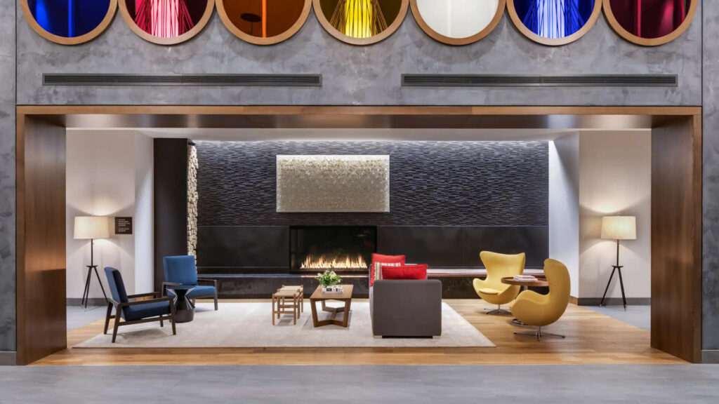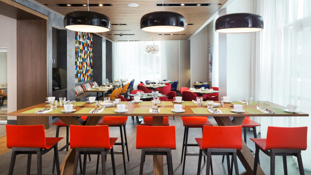 Each of the stylish guest rooms and suites are modern in design with splashes of vibrant colour running throughout. Each room is finished with wood furnishings and contemporary artwork. Amenities in each room include a king or queen-sized bed with a pillowtop mattress and plush duvets, flat-screen televisions, a coffee maker, a mini-refrigerator, a safety deposit box and premium bath products. Suites are also available offering additional living space and upgraded amenities.