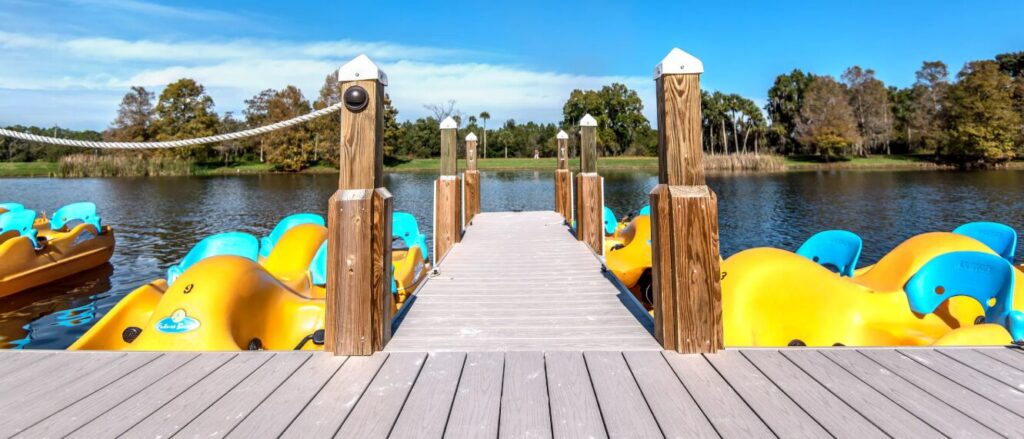• White-sand beach and water sports on the 21 acre Lake Windsong