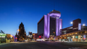The Hyatt Regency Milwaukee enjoys a prime location, anchoring itself in the heart of downtown Milwaukee. This central position places guests within easy reach of the city's most notable attractions and cultural landmarks. Just steps away from the Fiserv Forum and the scenic Riverwalk, guests can explore vibrant surroundings including an array of shopping options restaurants and a vibrant nightlife. The historic Third Ward, known for its beautiful art galleries is also nearby. Milwaukee International Airport is just 15 minutes away by car.