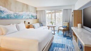 The Hyatt’s 656 guestrooms and suites provide a warm sanctuary with a contemporary feel. Hyatt’s signature Grand Beds, with pillow-top mattresses, promise a perfect night’s sleep, and the flat screen televisions and coffee makers make your stay even more comfortable. Popular with families, the kids’ suites feature a second bedroom with bunk beds, an activity table and an additional television.