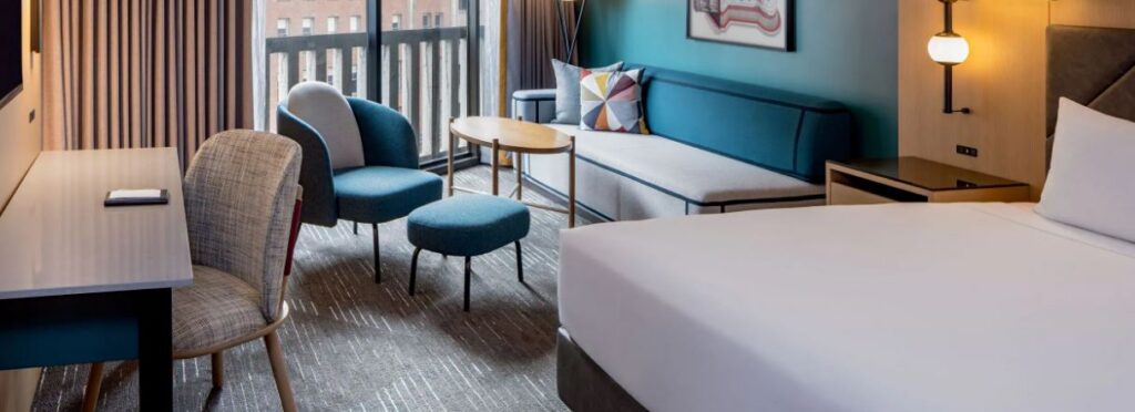 The quirky guestrooms and suites are elegant in design with a bright colour scheme throughout. Enjoy sweeping views of the San Francisco Bay or the Embarcadero district from many of the 821 rooms and suites. Flat-screen televisions, air conditioning, coffee-maker, mini-refrigerator, and safety deposit boxes come as standard in every room. There is a selection of luxury suites available offering spectacular waterfront views, additional living space, and upgraded amenities.